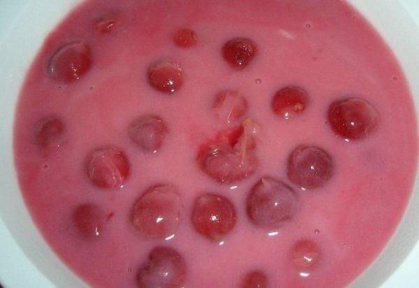 A grízt (búzadarát) egy teflon serpenyőben, kevés só hozzáadásával, állandó kevergetés mellett aranybarnára pirítod. Mielőtt a tűzről levennéd önts hozzá egy deci hideg vizet, hogy a szemek jól megduzzadjanak. Tedd félre és készítsd el a meggyszószt. Ehhez elég egy üveg meggybefőtt. Szűrd le a levét egy külön edénybe. Készíts kevés olajon, két evőkanál liszt hozzá adásával zsemleszínű rántást. Ha kész, dob bele a meggyszemeket forgasd át és engedd fel a befőtt levével. Csipet fahéjat, két deci élőflórás kefirt keverj hozzá – s már kész is!