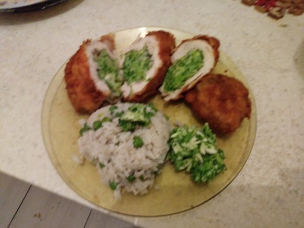 A brokkolit sós vízben megfőzzük. Nem kell sok neki, 5-8 perc alatt megpuhul. Jó ha a vízébe teszel egy csipetnyi szódabikarbónát, így megmarad a szép friss zöld színe. Amíg fő lereszeljük a két kemény tojást meg a szeletnyi sajtot, csipet sót, borsot. Ezeket alaposan összekeverjük. A csirkemellet ügyesen felvágjuk. (Nem elvágjuk!) Úgy, hogy az egyik fele ráhajtható legyen a töltelékre, amit a húsra halmozzunk…